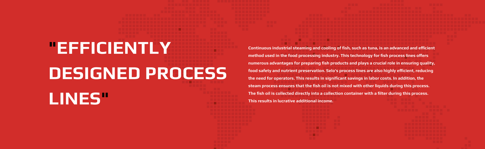 Continuous industrial steam cooking and cooling of fish, such as tuna, is an advanced and efficient method used in the food processing industry. This technology offers numerous benefits for preparing fish products and plays a crucial role in ensuring quality, food safety and nutrient preservation. There is also need for fewer operators due to more efficient production processes. Resulting in significant labor cost savings. Besides, fish oil can be preserved, filtered out and sold without the use of third parties or difficult filtering methods resulting in lucrative additional income.