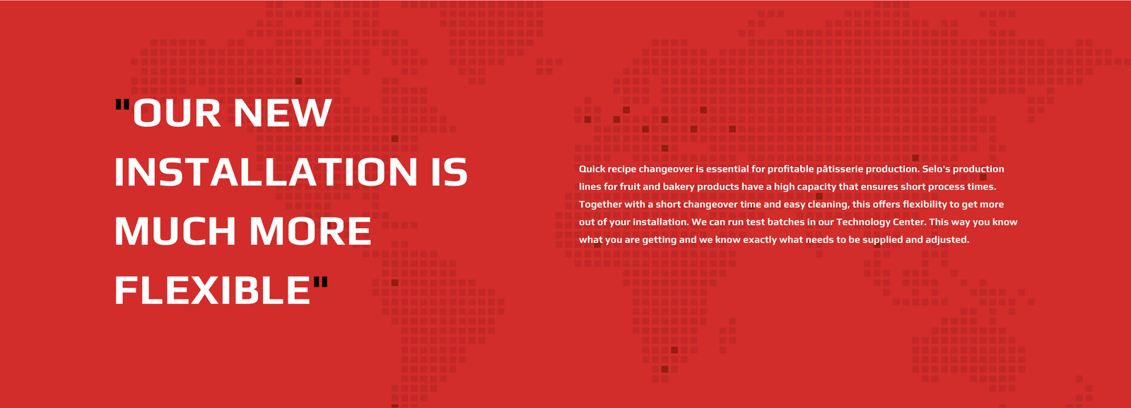 Efficiently produce high-quality patisserie and bakery ingredients with Selo’s patisserie installations. We supply production lines and installations suitable for producing products and ingredients for the (pastry) baker. This can range from bonbons and chocolate fillings to everything in the pastry shop. These include toppings for pastries, desserts and cakes. These toppings are jelly products with fruit and fruits, such as jam, berries or cherries, as the basic ingredient.