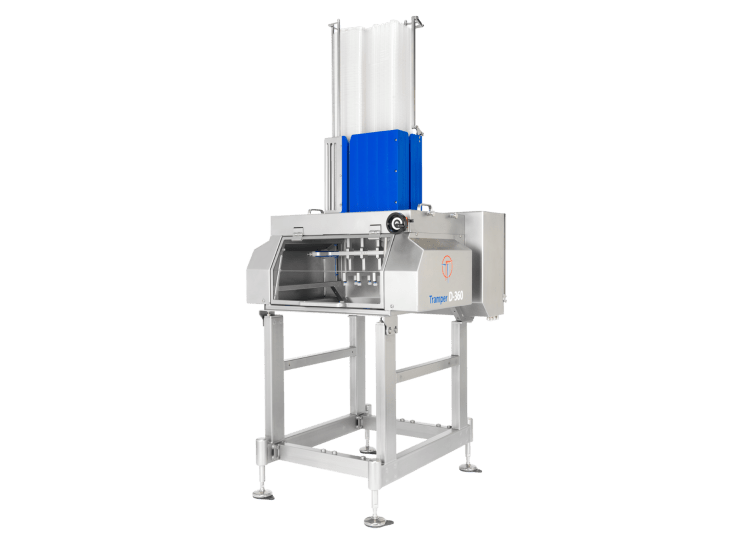 The Tramper D-380-P is a servo-controlled denester with an available denesting range of 300 x 800 mm. The machine is suitable for single or multiple denesting and positioning of a broad range of trays or lids. The size of the tray or lid or the required pitch on which the trays must be delivered to the packaging line determine the amount of trays or lids that are denested per cycle.