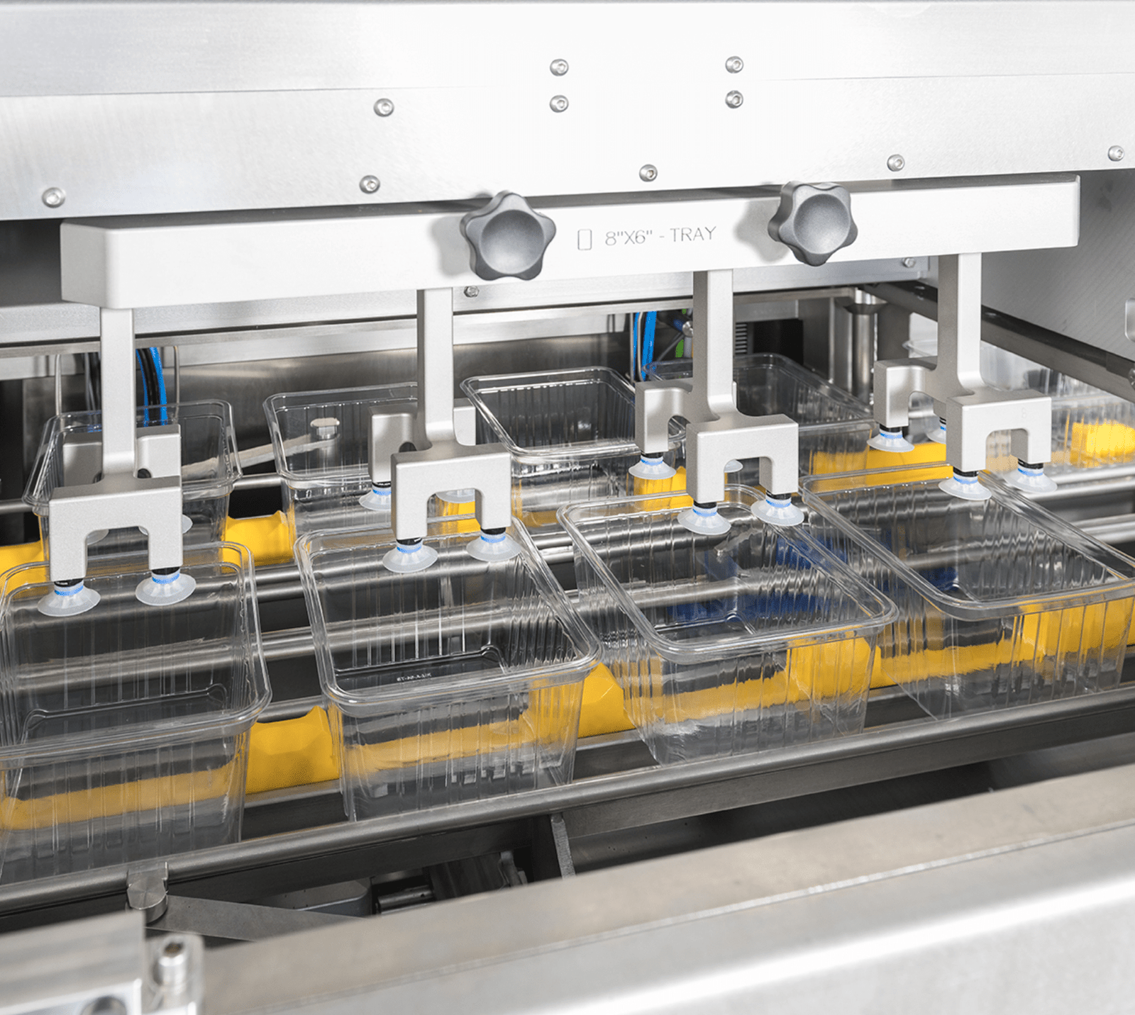 The tooling  is very easy to exchange, which makes a very quick changeover between different tray sizes possible.