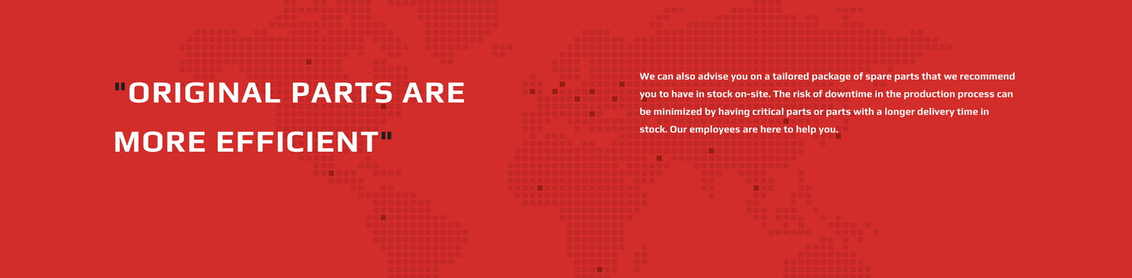 One of the main reasons for you to invest in quality is that you need to halt the production less often. As machine builders and supplier of various premium brands, we know what the lifespan of implemented or assembled parts are. Selo offers original quality spare parts, so-called OEM parts, which comply with all safety standards. For you, this means an investment in performance, quality, product safety, and a longer lifespan. On balance, original parts cost less because they last longer and included in the machine warranty.